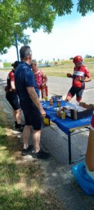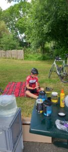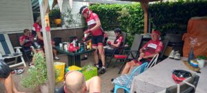 Tussendoor waren er een aantal verzorgingsposten waar iedereen voorzien werd van de nodige hapjes, drankjes en peptalks..